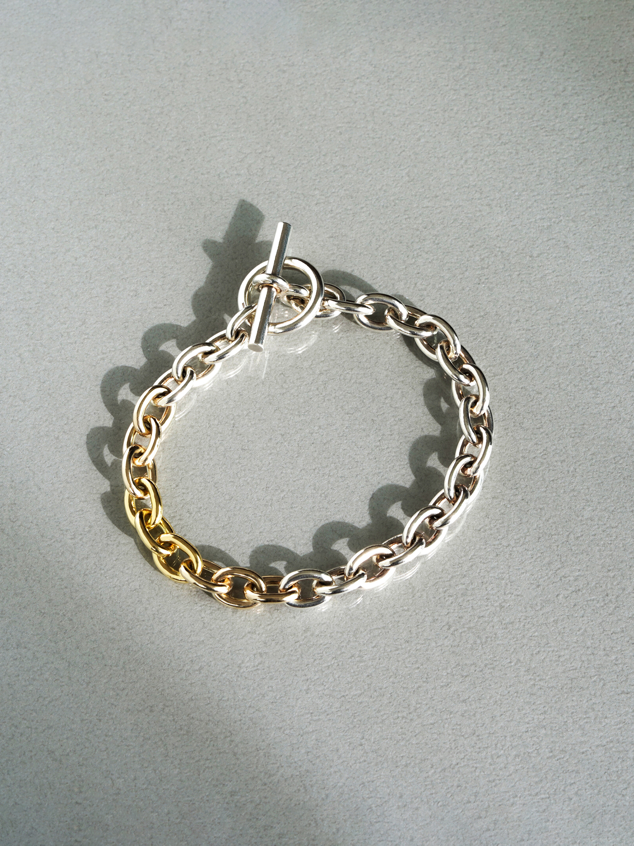 色合いの美しいスターリングシルバー、柔らかくほのかに赤みのさすK10yg、イエローの発色が美しいK18ygと3色の地金を使用。