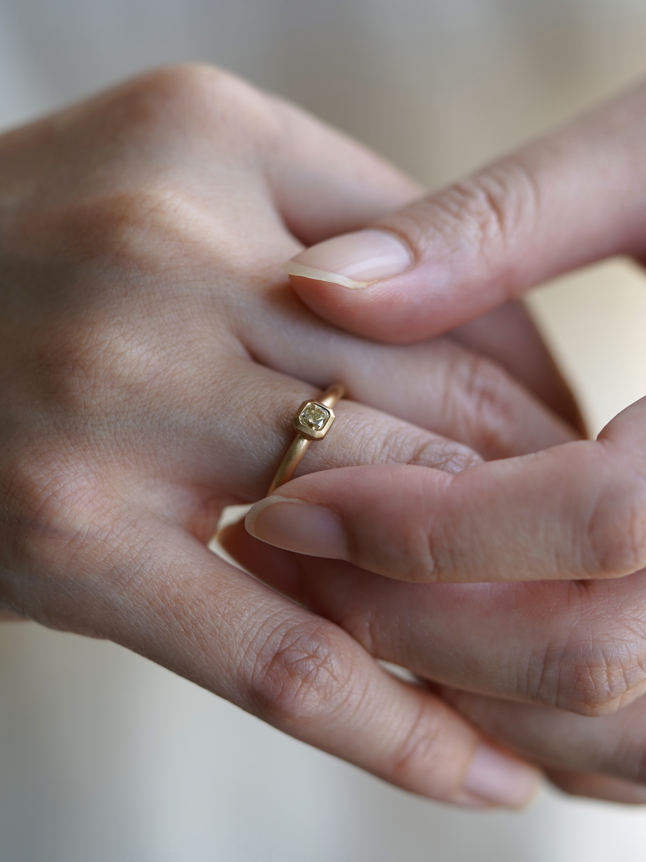 OLDMINE CUSHION CUT DIAMOND BEZEL SET RING / ONE OFF Series