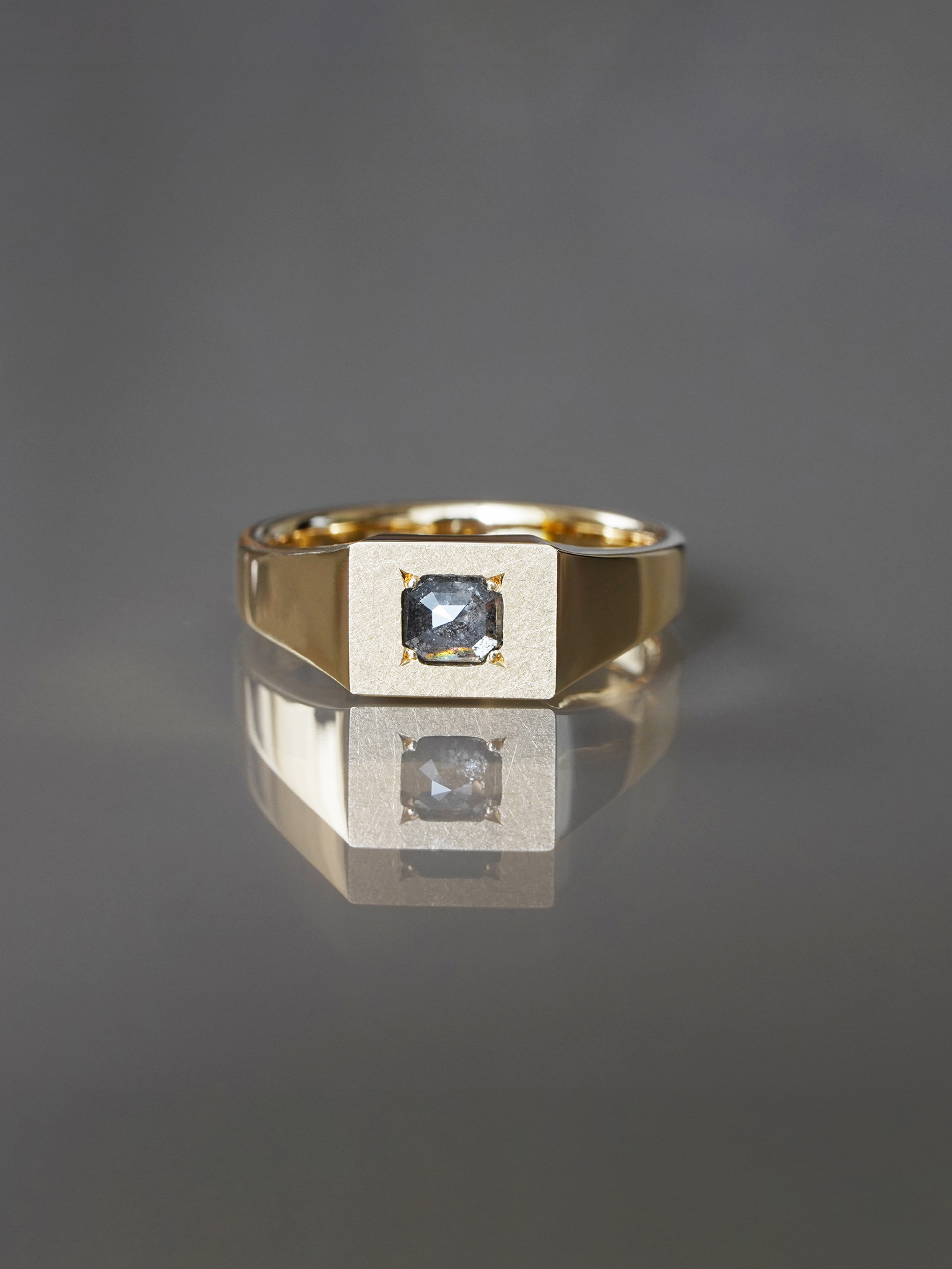 【 ROSE CUT SALT & PEPPER DIAMOND SIGNET RING 】