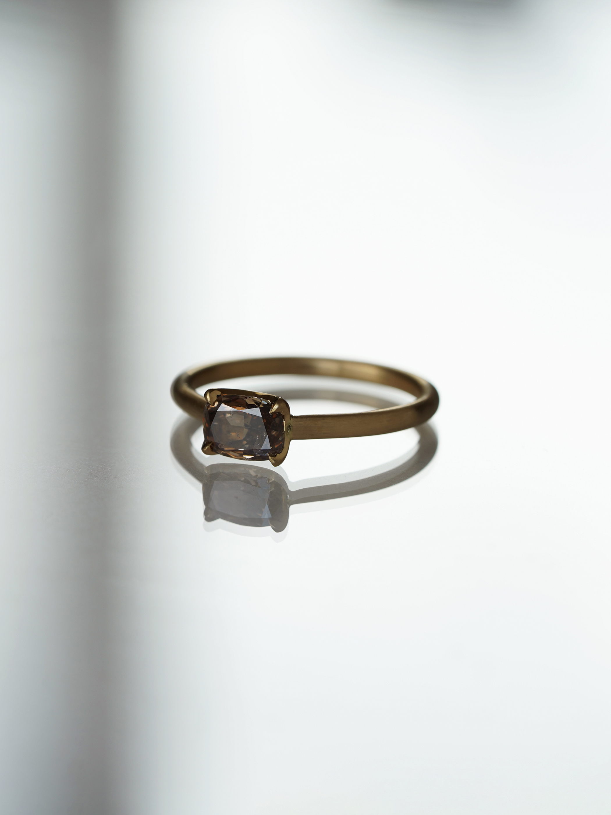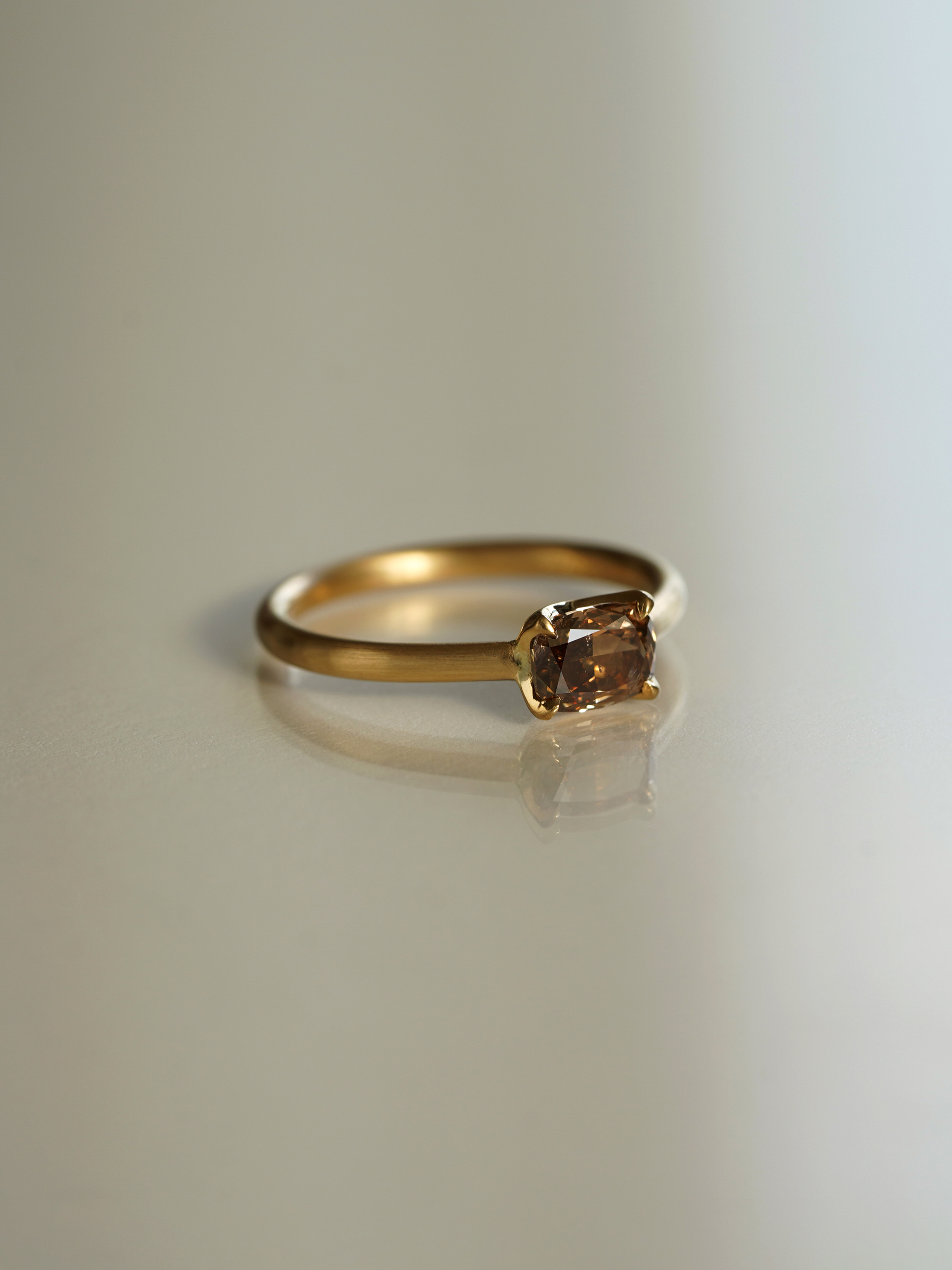 【New stock】CUSION CUT FANCY BROWN DIAMOND SOLITAIRE RING / ONE OFF Series