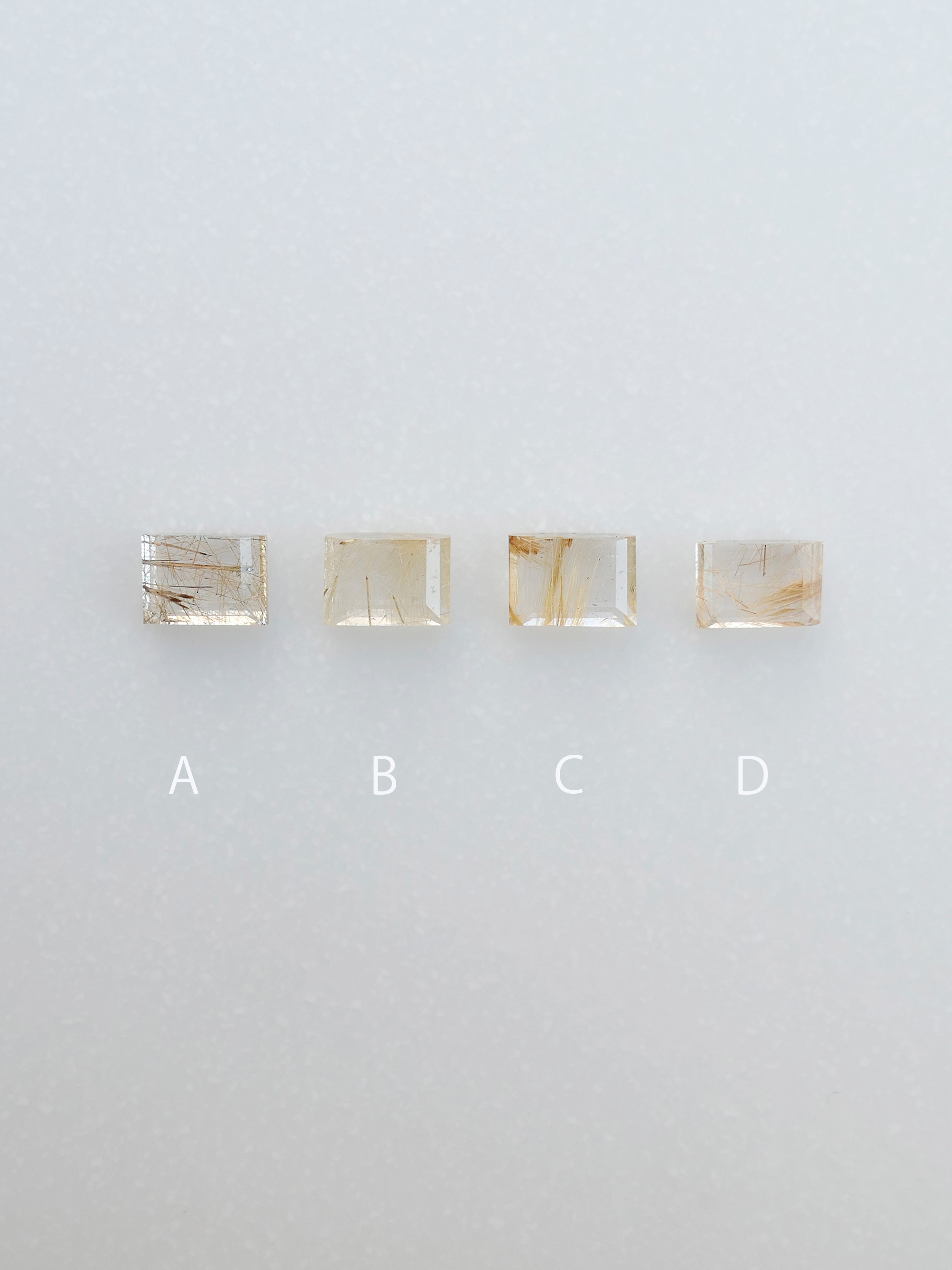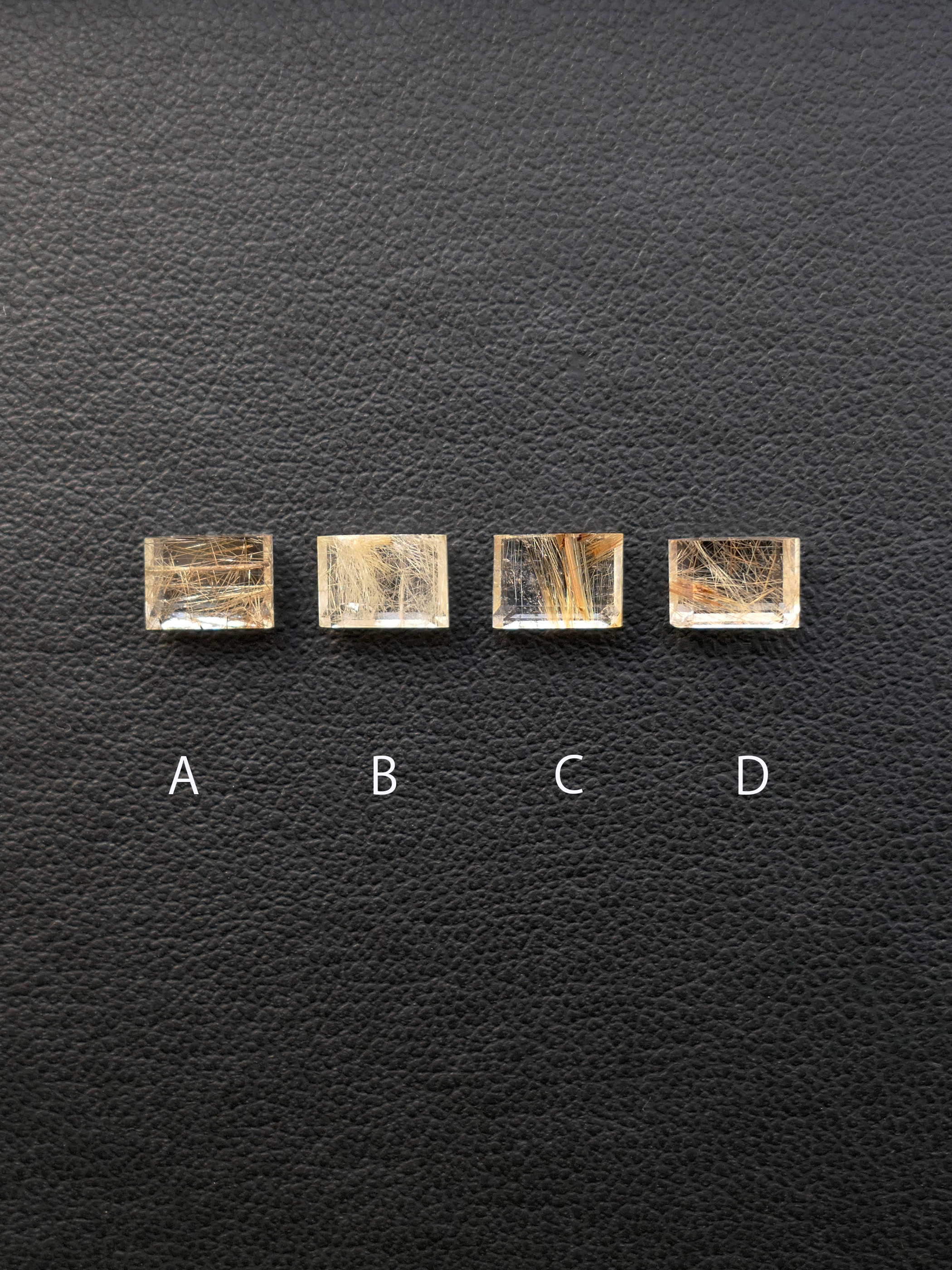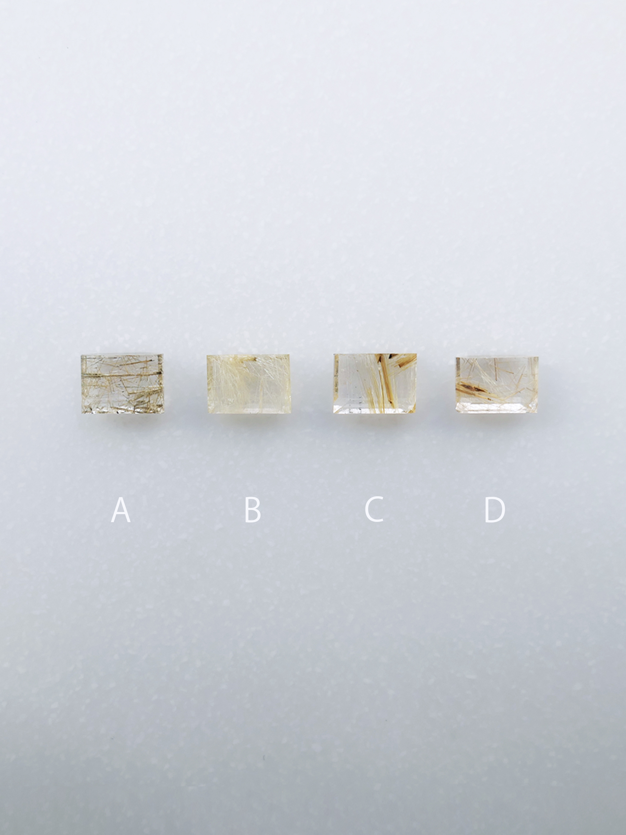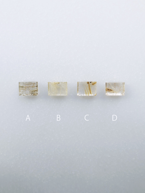 商品になった時の見え方に近い白バック、針の表情の詳細が見られる黒バック、ふたつのパターン、計4枚ルースの画像がございますが、アルファベットが同じものは全て同じ石でございます。